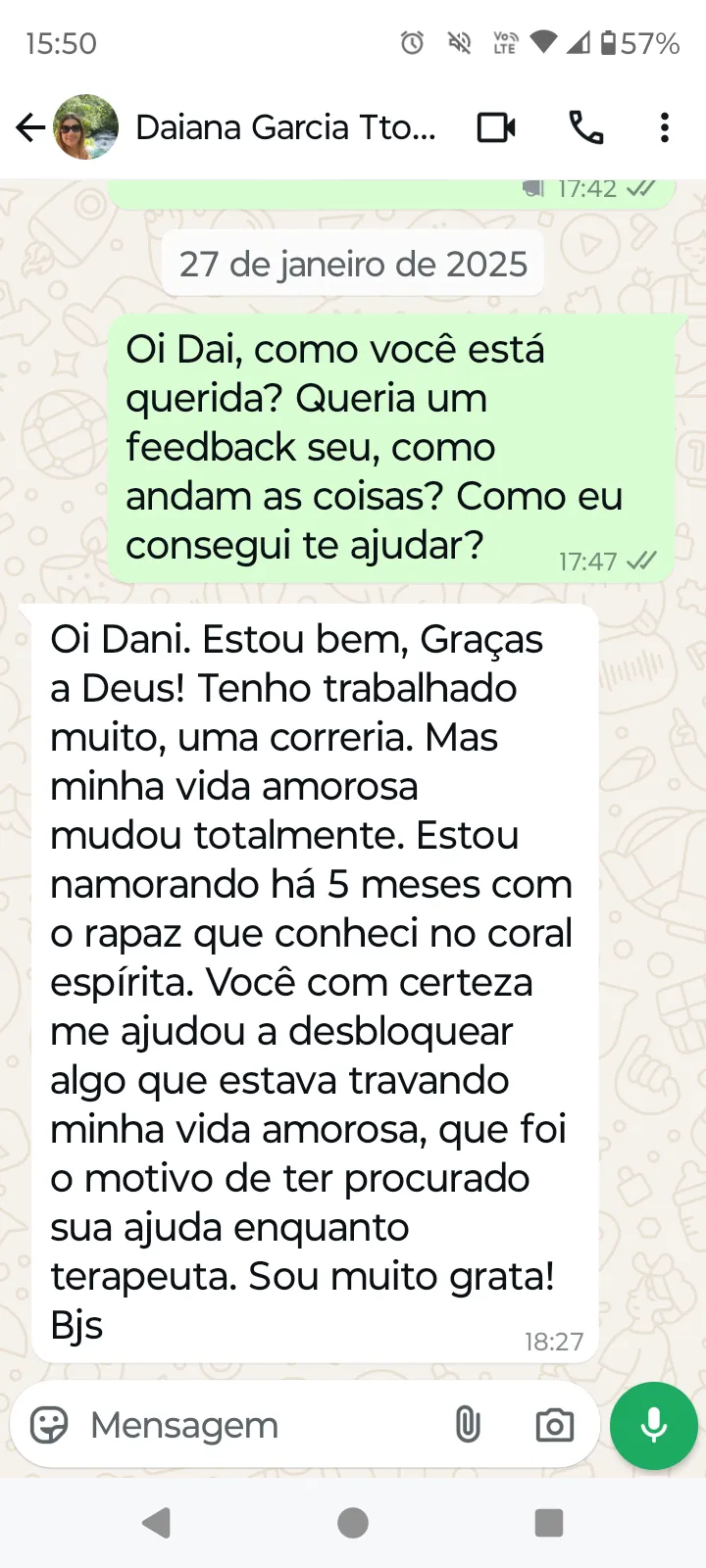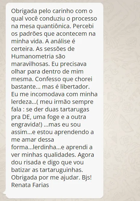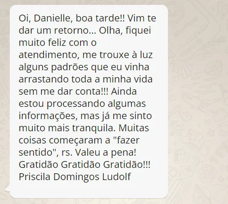 Já ajudei dezenas de mulheres a superarem crises, traumas e dores emocionais profundas. Meu compromisso é com a transformação real e duradoura da sua vida emocional, oferecendo um caminho de reconexão com a sua essência e poder interior.